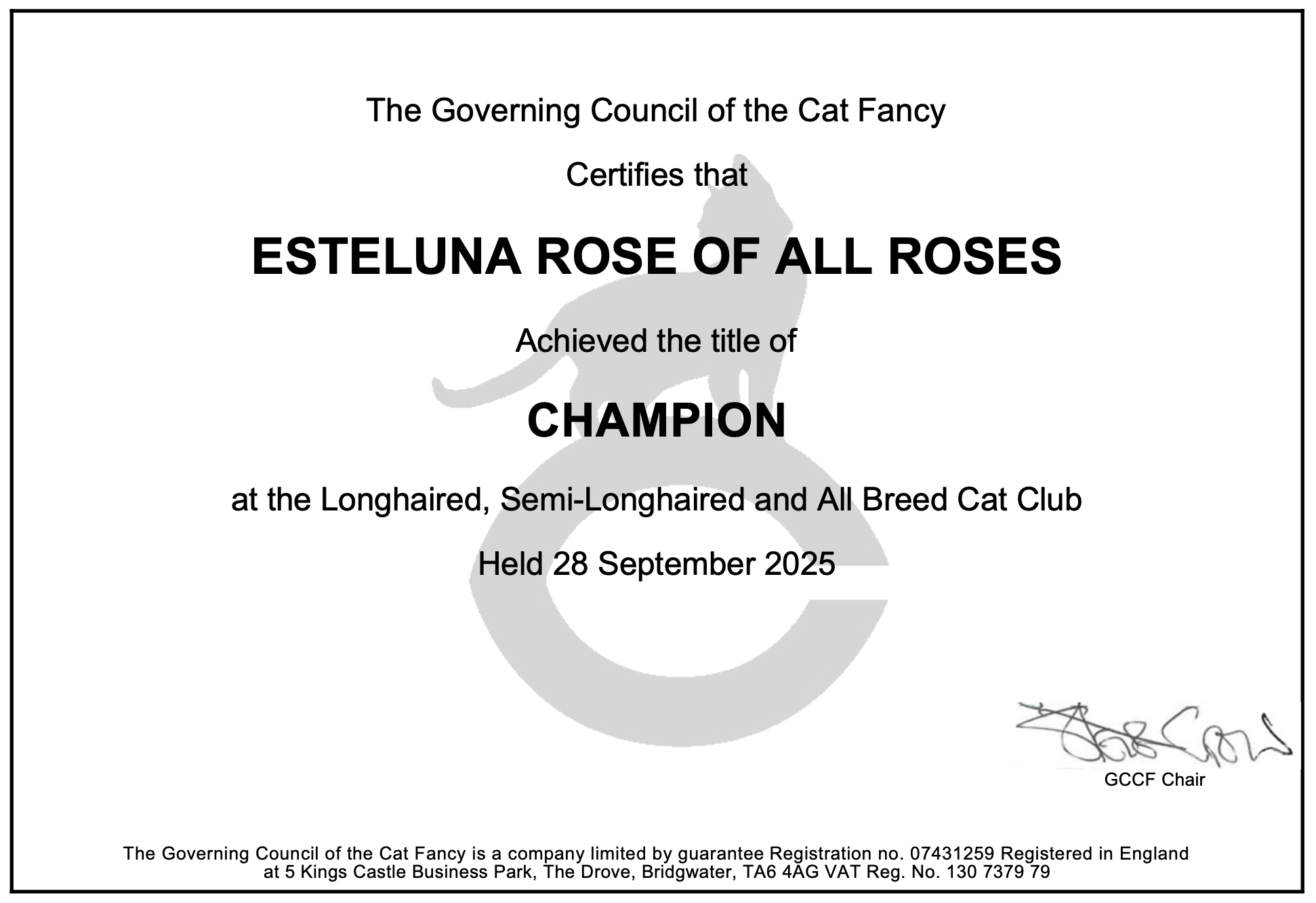- EsteLuna Rose of All Roses – Challenge Certificate (making her a Champion!)